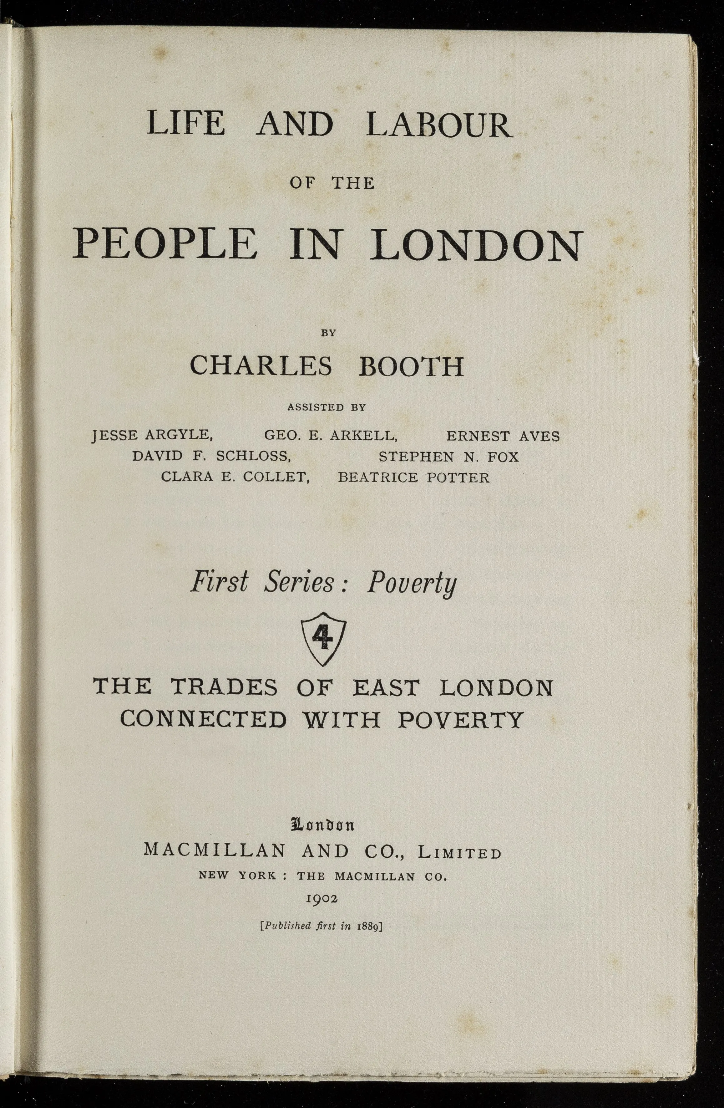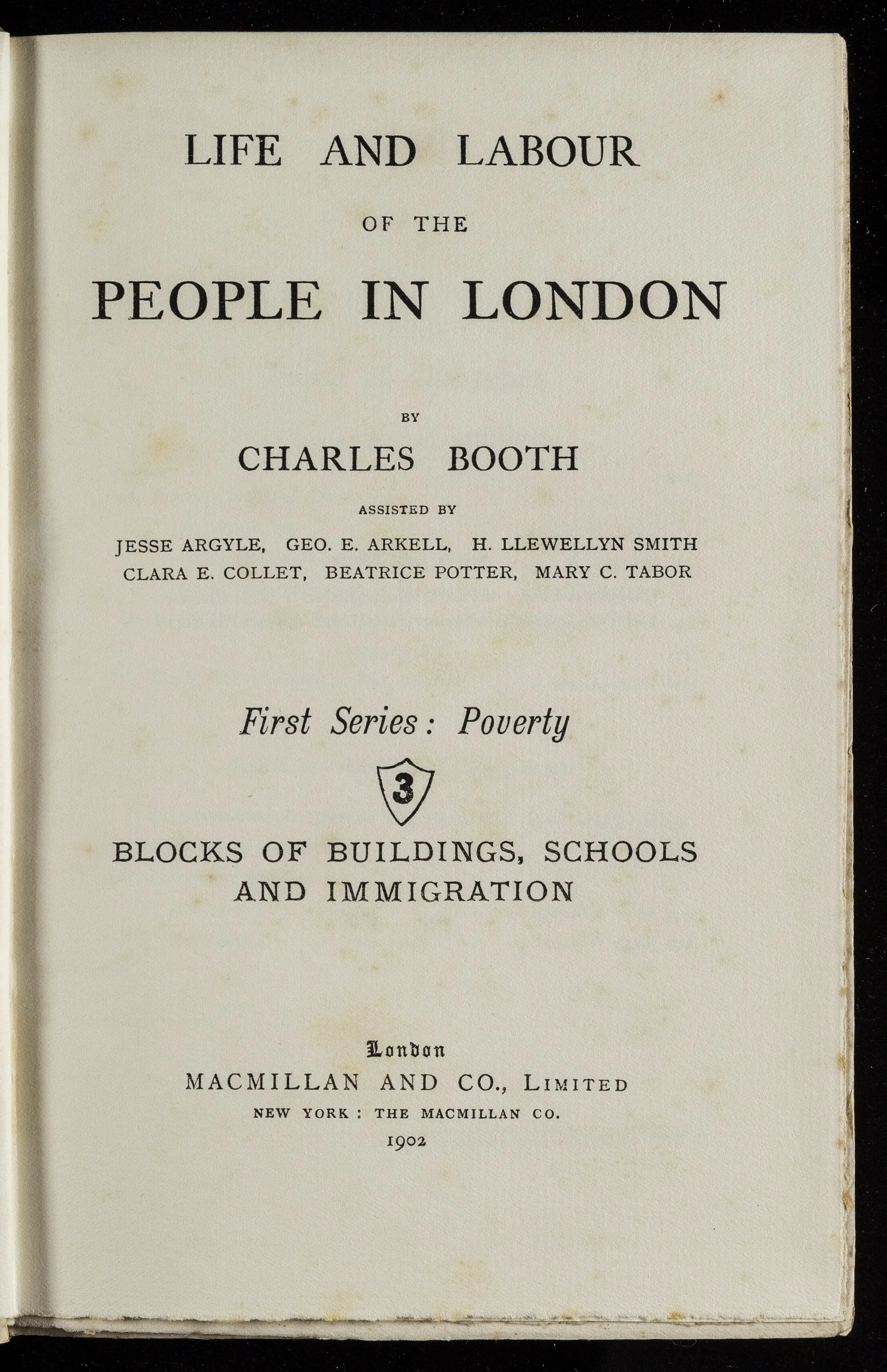The final set of books authored by Booth and his assistants as Life and Labour of the People in London were released between 1902 and 1903. They consisted of 17 volumes which included 4 volumes related to Poverty, 5 related to Industry, 7 related to Religious Influences and a last conclusive volume.