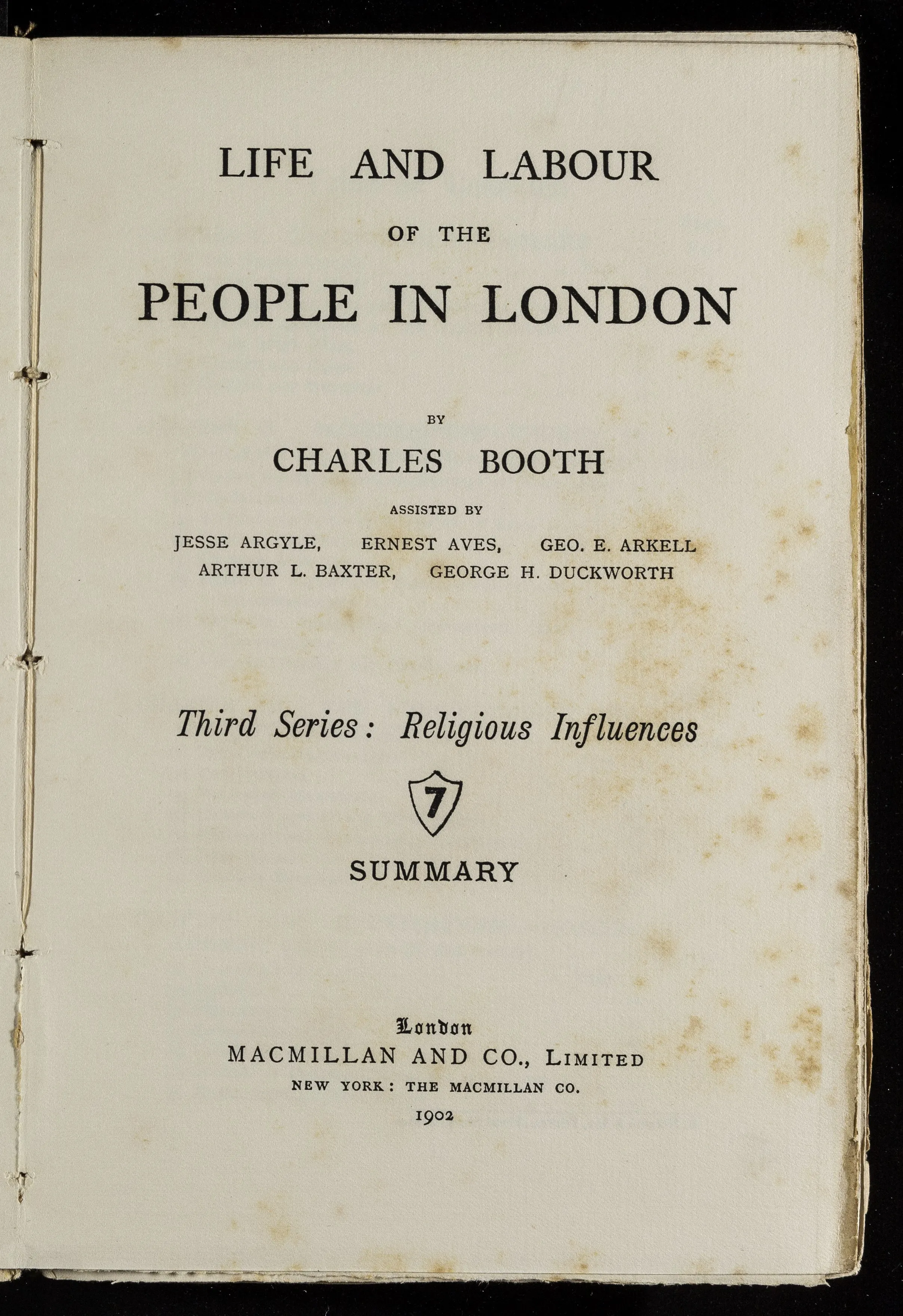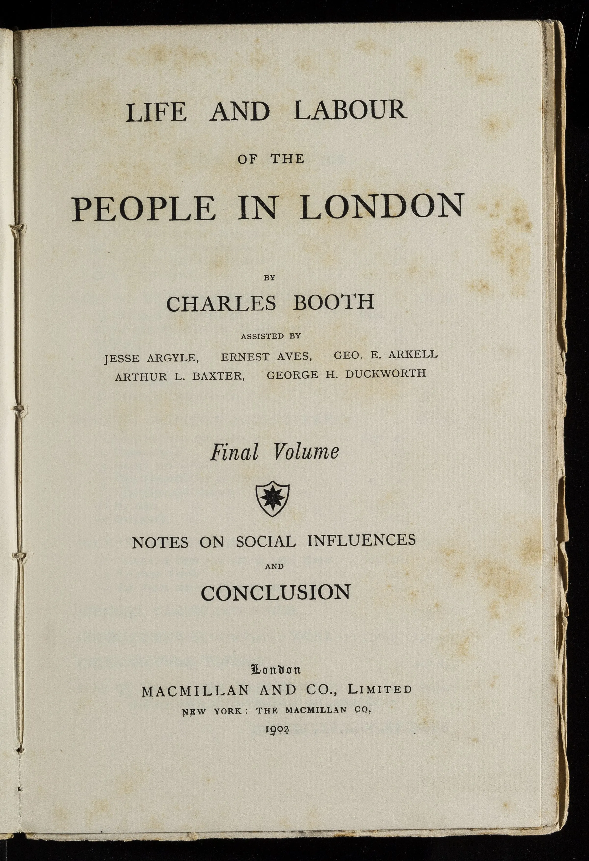 The final set of books authored by Booth and his assistants as Life and Labour of the People in London were released between 1902 and 1903. They consisted of 17 volumes which included 4 volumes related to Poverty, 5 related to Industry, 7 related to Religious Influences and a last conclusive volume.